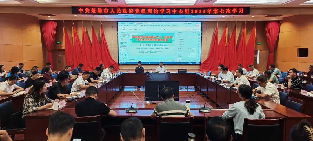 8月14日,楚雄市人民政府党组理论学习中心组举行2024年第七次学习会议,邀请了云南省宏观经济研究院副研究员王林到会作题为《因地制宜发展新质生产力 推进楚雄市经济社会高质量跨越式发展》的专题讲座。