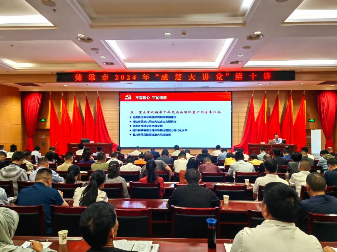 9月27日,楚雄市举办2024年“威楚大讲坛”第十讲,邀请云南省铸牢中华民族共同体意识宣讲团成员、云南大学马克思主义学院赵春盛教授围绕“铸牢中华民族共同体意识”作专题辅导。
