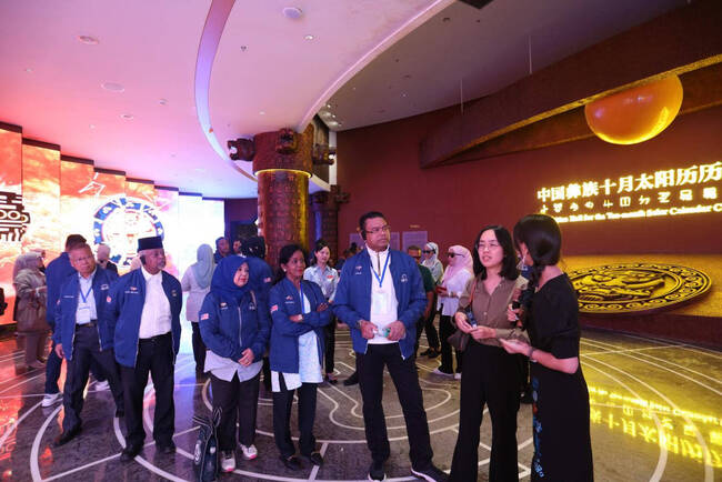 在中国彝族十月太阳历文化园,考察团现场参观独特的彝族十月太阳历历法文化,见证楚雄市大力传承、发扬、创新民族传统文化的生动实践。