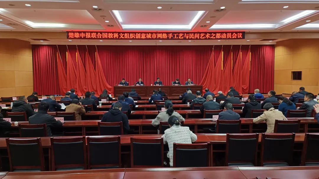11月8日,楚雄申报联合国教科文组织创意城市网络“手工艺与民间艺术之都”动员会议召开,对楚雄申报工作作员部署,副州长罗富生出席会议并讲话。
