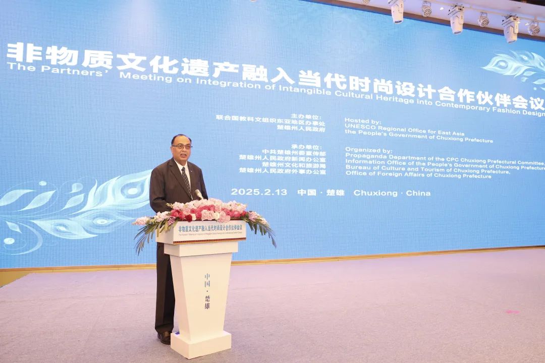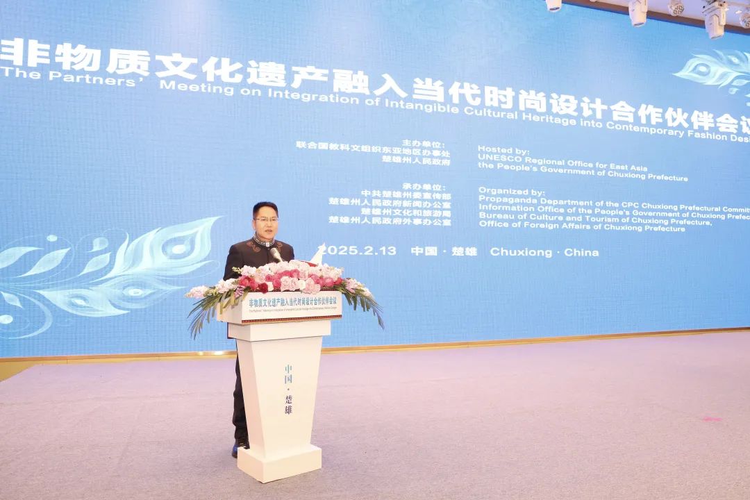 2025年2月13日,联合国教科文组织非物质文化遗产融入当代时尚设计合作伙伴会议在楚雄举行。