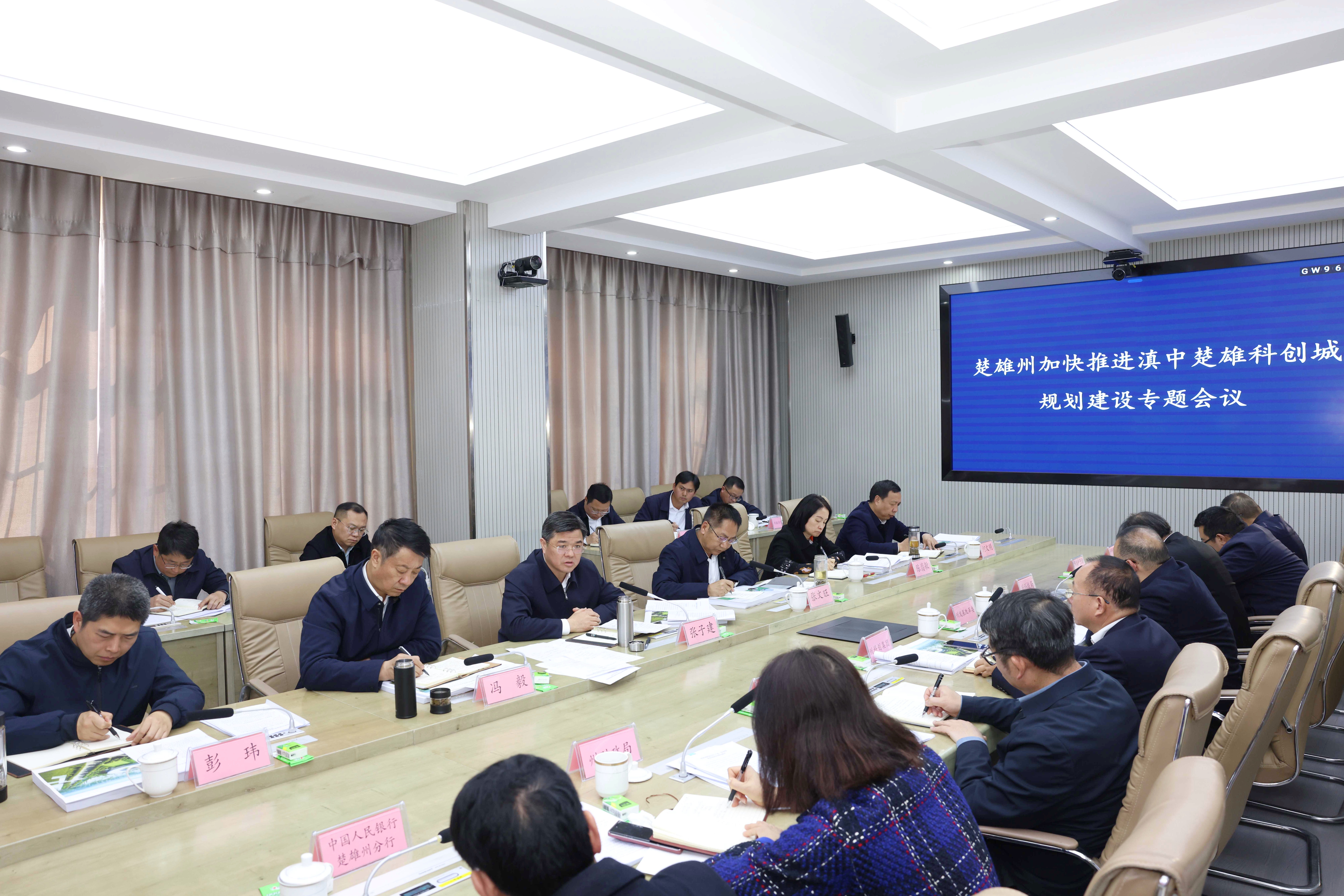 州委常委、楚雄市委书记冯毅,副州长陈翡敏、彭玮等发言。滇中楚雄科创产业发展集团有限公司负责人汇报项目规划建设情况。州级有关部门负责人参加会议。