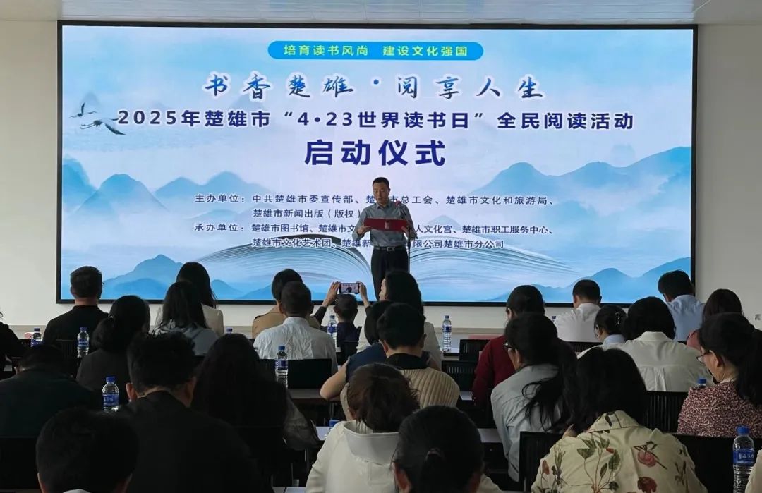 4月23日,在第30个“世界读书日”到来之际,楚雄市以“书香楚雄•阅享人生”为主题,在楚雄市职工服务中心举办2025年全民阅读系列活动,旨在弘扬中华优秀传统文化,推动全社会都参与到阅读中来,激发全民阅读热情,形成“爱读书、读好书、善读书”的浓厚社会氛围。活动由中共楚雄市委宣传部、市总工会、楚雄市文化和旅游局联合主办,吸引了数百名市民、学生及阅读爱好者参与。