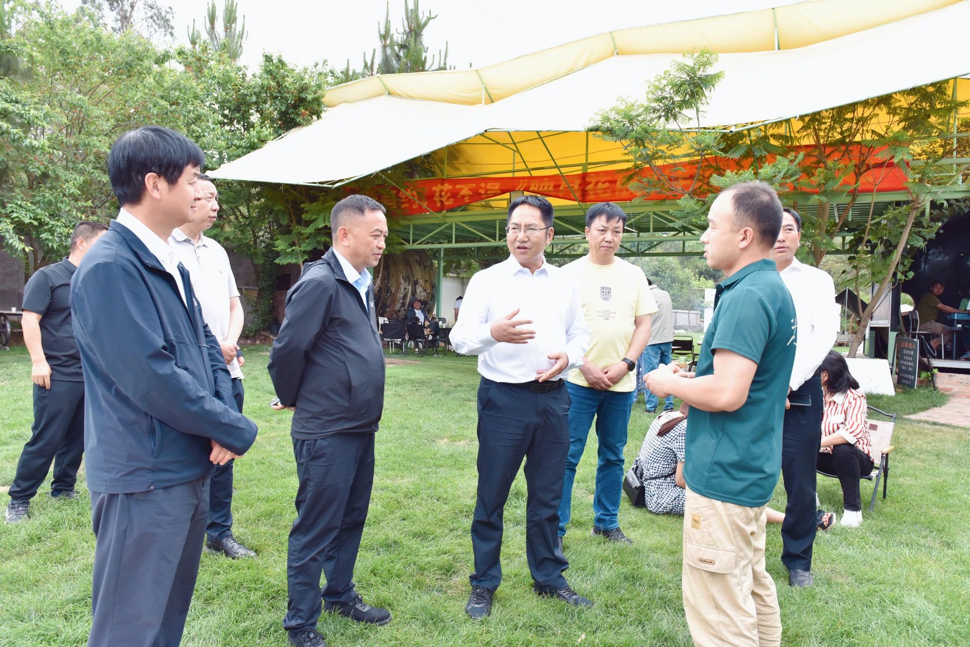 2025年5月2日,州委副书记、州长张文旺率队到楚雄市调研花卉产业、农文旅融合、假日经济等工作时强调,要深入学习贯彻习近平总书记考察云南重要讲话精神和习近平总书记关于全方位扩大国内需求的重要指示精神,发挥比较优势,以假日经济“百花齐放”,向“新”点燃消费热情,持续打响“中国火城•浪漫花都”品牌。楚雄市东瓜街道永兴社区馨园苗圃里人头攒动,前来赏花、拍照打卡的市民络绎不绝。张文旺走进花园,与经营者深入交流,了解人流量、收入等情况,勉励经营者稳扎稳打,持续提升花园品质,强化服务保障和安全管理,为市民提供更好的消费体验。来到深落•小森林自然营地,张文旺与经营者亲切交谈,了解营地建设和经营情况,勉励经营者做优做精、完善服务、提升供给,不断满足市民的消费需求。