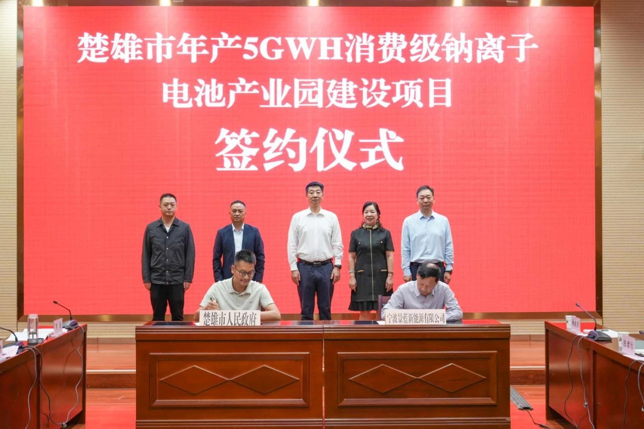 8月25日,楚雄市与宁波景蓝新能源有限公司年产5GWH消费级钠离子电池产业园建设项目正式签约,标志着楚雄市绿色能源产业延链补链迈出了坚实一步。