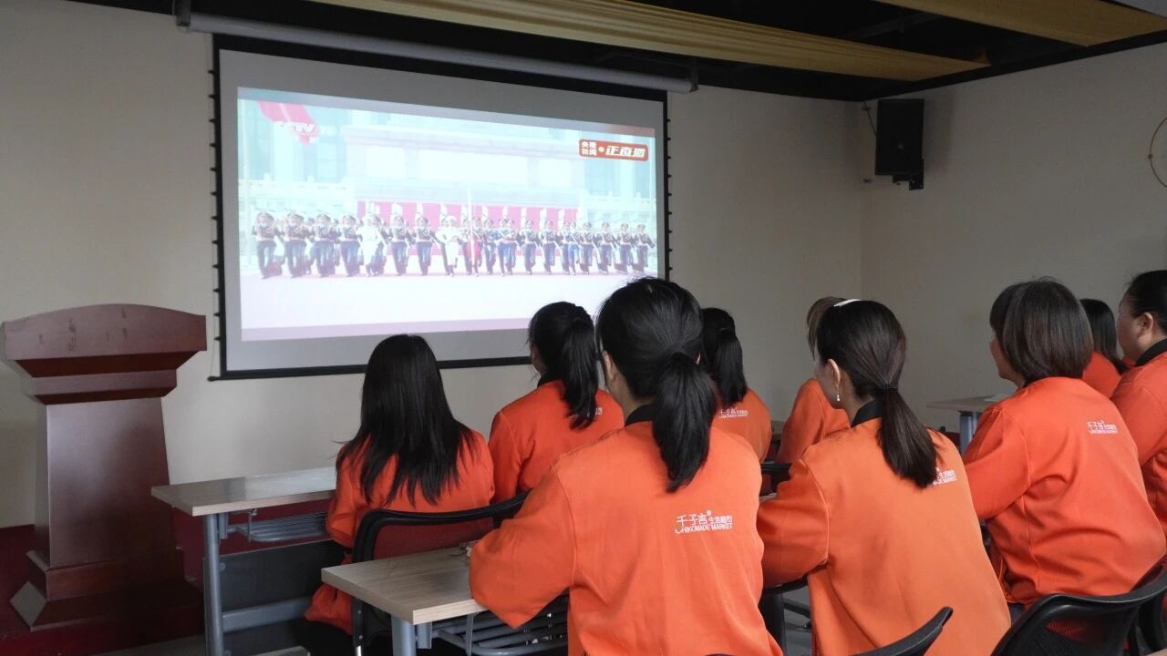 在楚雄千子言经贸有限公司,员工们在大屏幕前观看阅兵。千子言超市营销总负责刘自祥表示,通过阅兵仪式,我们深刻地感受到了国家的繁荣昌盛,只有国家的强大我们才能拥有更加广阔的舞台,在铭记历史的同时,我们也将珍惜当下,经营好自己的企业。