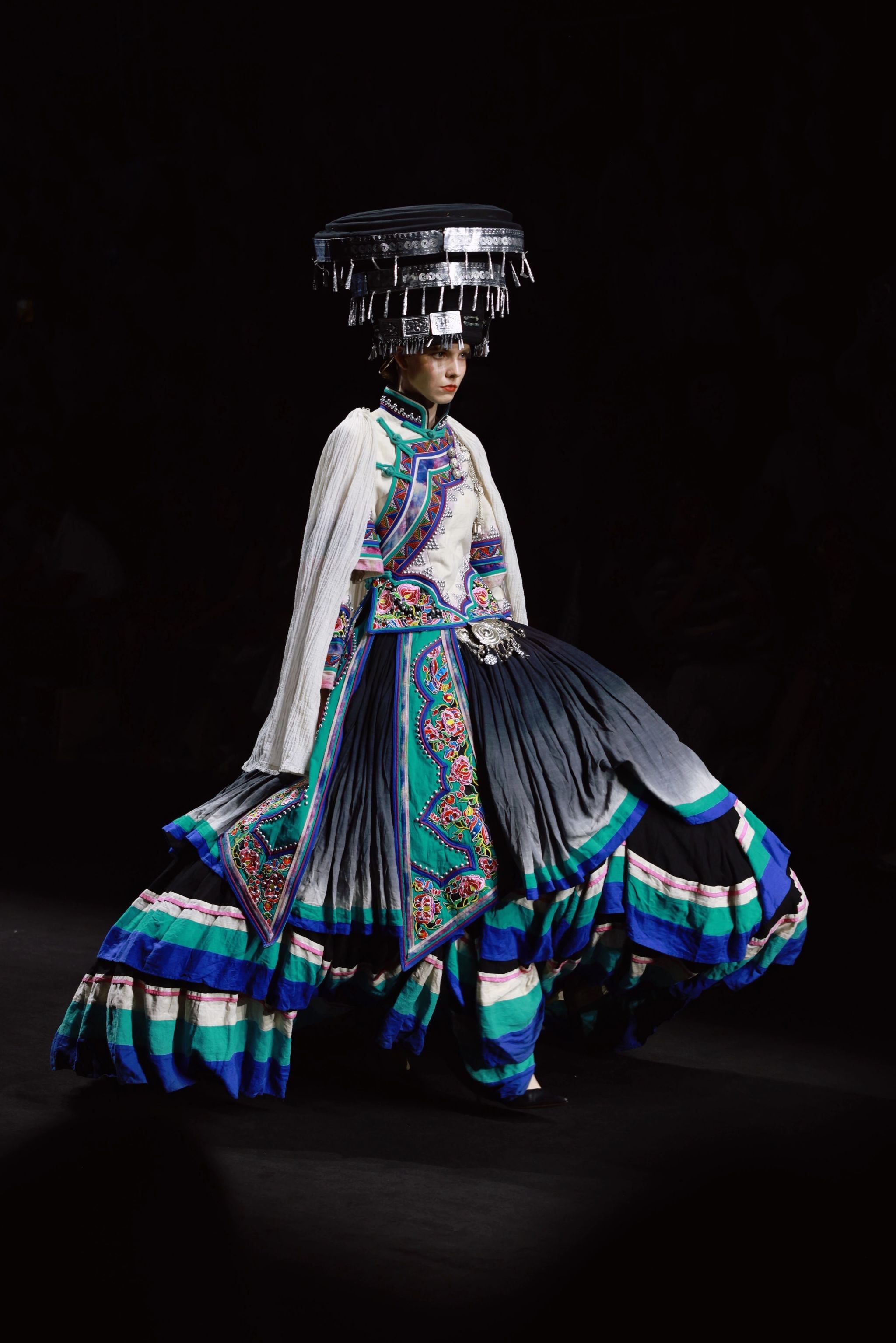 当最后一套作品展示完毕,设计师和绣娘走上T台,与模特们并肩站立时,台下掌声久久不息……