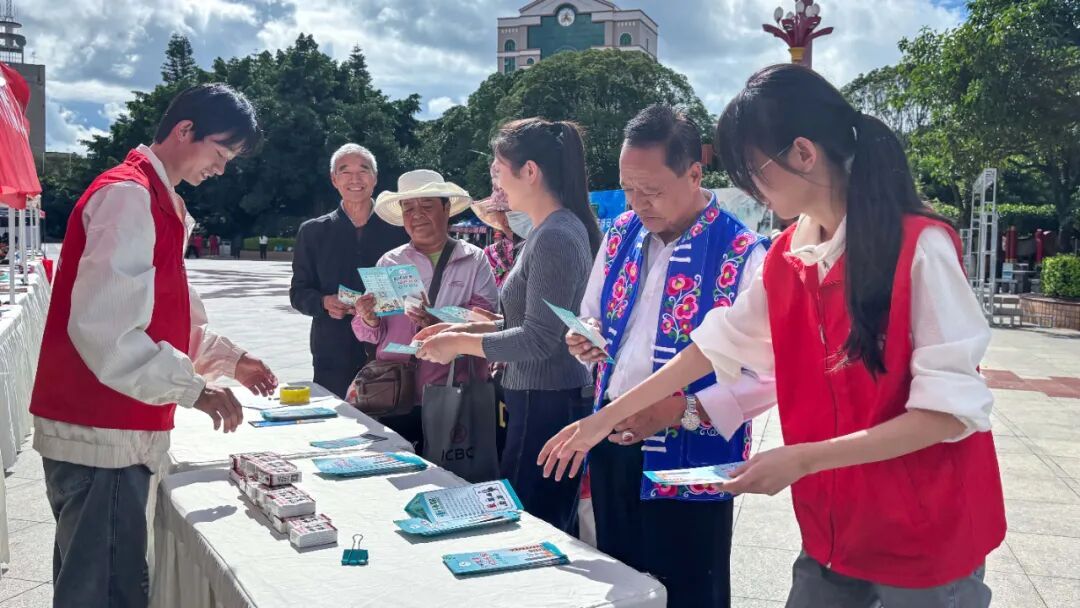 宣讲结束后,活动转入户外集中宣传环节。在新时代文明实践广场,市委宣传部(市委文明办)、市人武部、市发展改革局(市国防动员办公室)等10家单位联合设立政策宣传与咨询点,面向市民开展国防法规、征兵优待、退役军人保障等政策的普及工作。现场工作人员通过发放宣传手册、主题手提袋及现场讲解,吸引众多市民驻足参与,气氛热烈。