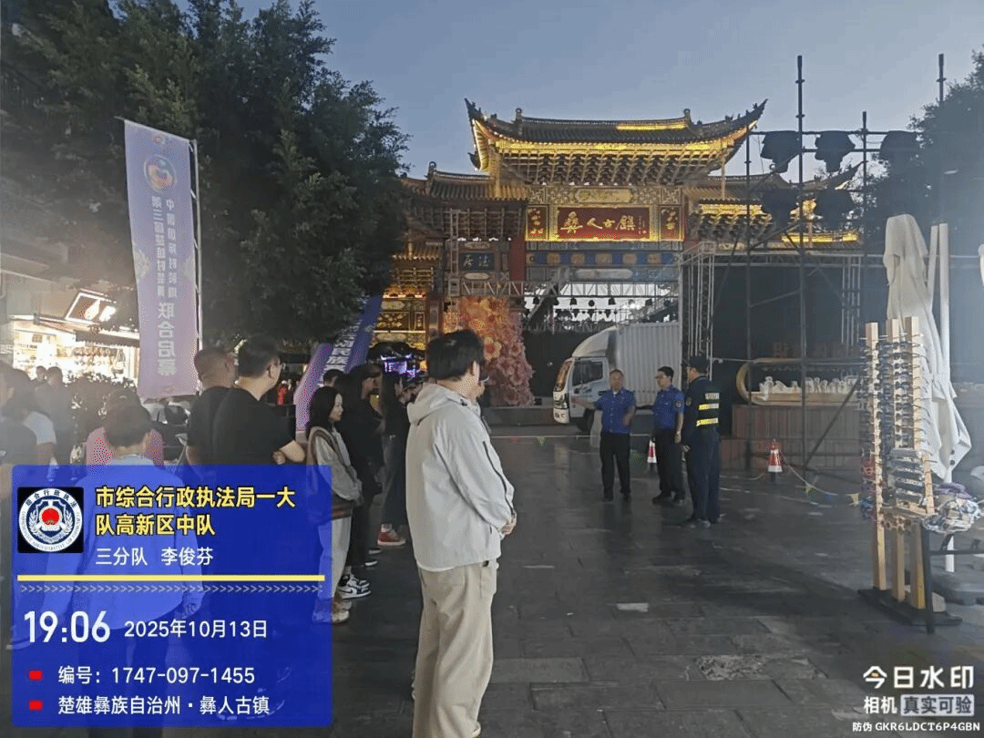 活动现场外,城管部门重点排查违规占道摊贩,清理杂物垃圾,确保消防通道与应急通道绝对畅通。从舞台周边到街区角落,城管队员用脚步丈量责任,以精细化管控为活动营造整洁有序的环境。