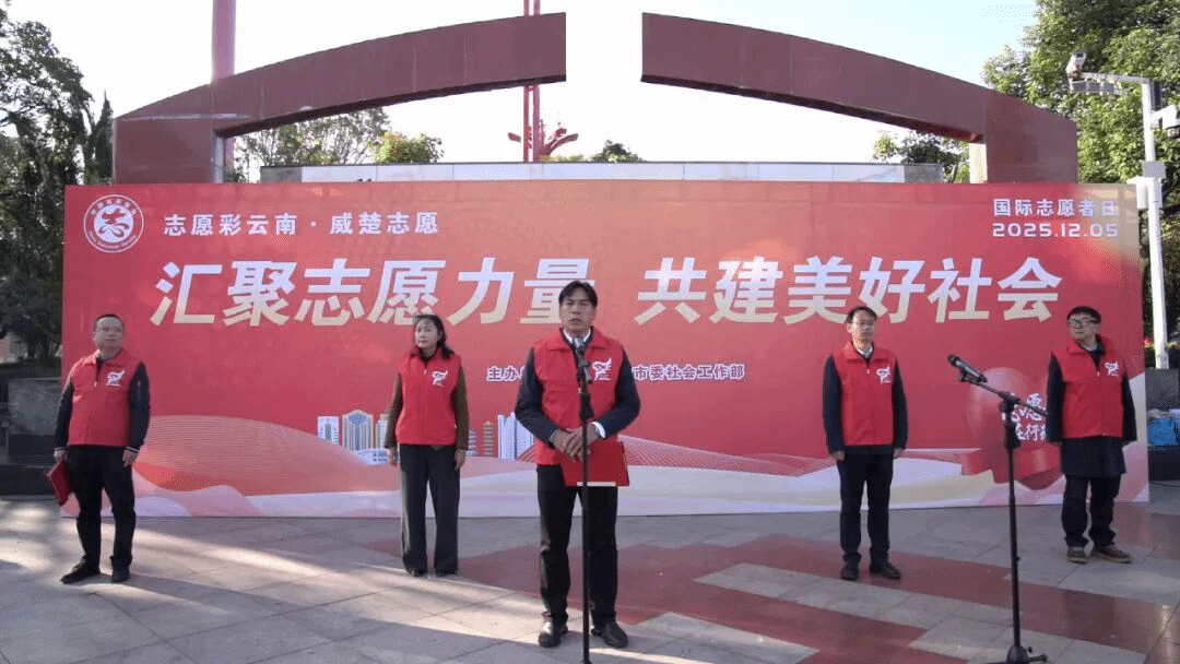 2025年12月5日,楚雄市“12•5”国际志愿者日主题活动暨志愿服务活动启动仪式在桃源湖体育公园举行。州委社会工作部副部长毕学武出席活动并宣布活动启动,楚雄市委副书记顾平致辞。市人大常委会副主任杨培香,市政协副主席阮骏出席。