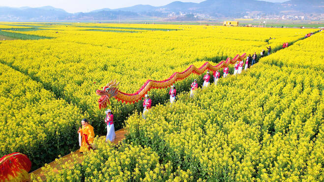 近日,楚雄首届骠川油菜花海文化节在楚雄市子午镇举办,一万多亩连片绽放的油菜花海吸引了不少游客徜徉其中。