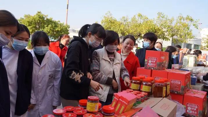 现场人头攒动,琳琅满目的农特产品吸引了不少周边群众驻足购买。