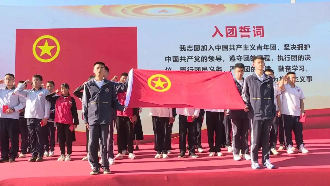 入团仪式在雄壮的国歌声中拉开序幕,出席领导为新团员代表颁发了团员证、团徽。随后,全体团员面对鲜艳的团旗,举起右手,庄严宣誓,一声声铿锵有力的誓言,表达了同学们对加入共青团的无限向往和为团组织增光添彩的豪迈激情。