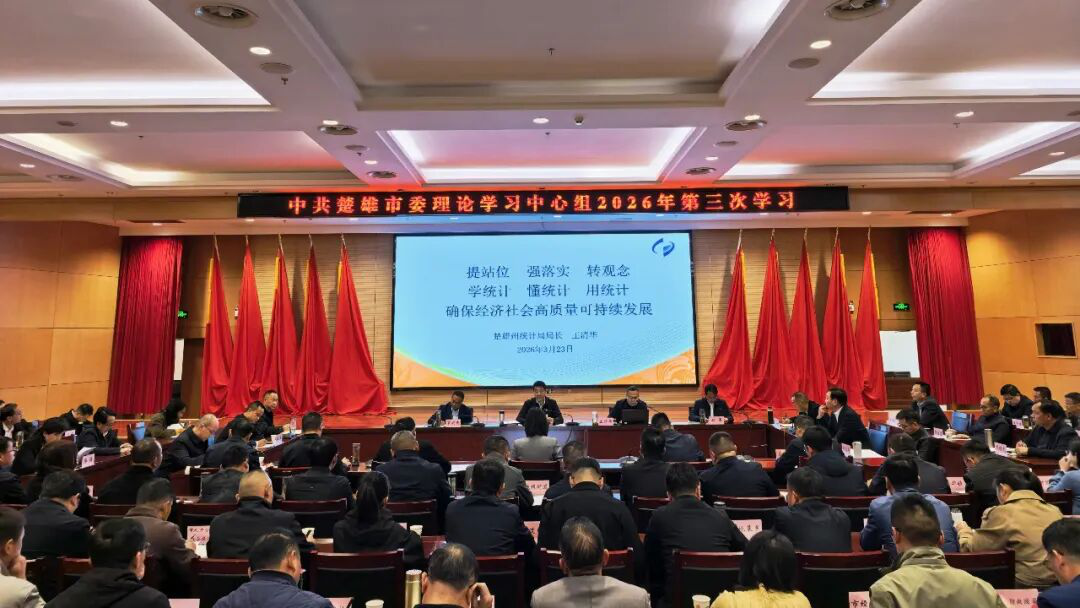 3月23日,市委理论学习中心组举行2026年第三次集中学习。州委常委、楚雄市委书记冯毅主持学习时强调,要深入学习领会习近平总书记关于树立和践行正确政绩观、推动高质量发展、统计工作的重要讲话和重要指示批示精神,树立和践行正确政绩观,提升“学统计懂统计用统计”能力水平,筑牢数据质量生命线,为谱写好中国式现代化楚雄市实践篇章奠定坚实统计支撑。