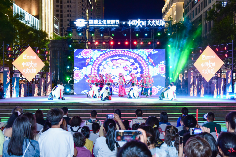 推介会上,把古歌绣成衣裳,把故事穿在身上的大型彝族服饰秀《云绣彝裳》精彩亮相,迸发出穿越时空的千年彝绣魅力,精彩绝伦的彝族歌舞表演轮番上演,现场问答互动为观众搭起了解楚雄的文化桥梁,令人身未出发,心已启程,沉浸式火把狂欢夜更是让现场群众提前体验“万人跳火”的激情狂欢,全面展示民族之美、诠释民族之魂。推介会通过民族歌舞、服饰展演、“楚雄有礼”大礼包互动赢取、“中国火城”系列文创展示、沉浸式火把节狂欢夜体验等多样形式带大家一起遇见楚雄、走进楚雄、感知楚雄。