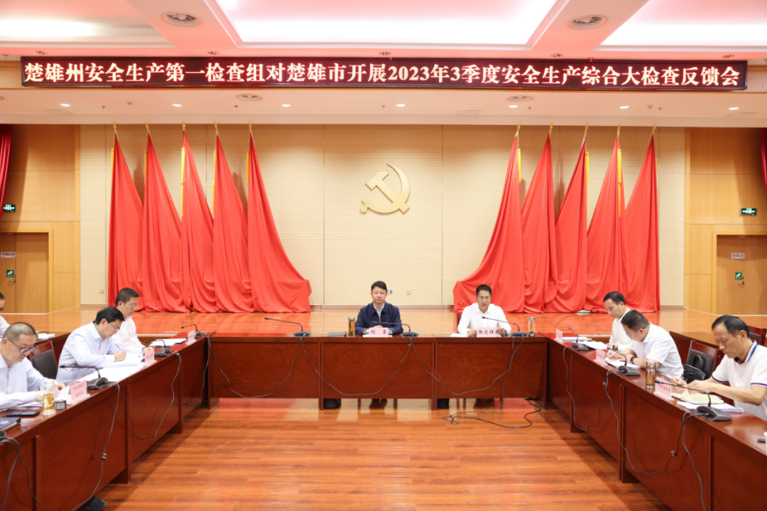 9月19日至20日,楚雄州安全生产第一检查组到楚雄市开展2023年三季度安全生产等重点工作大检查,并召开检查反馈会。