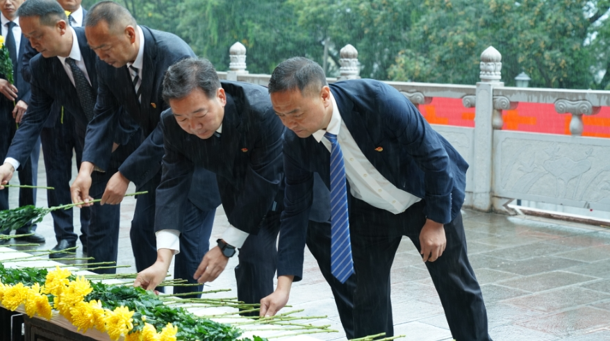 刘勇等领导与各界代表神情庄重、迈步上前,在花篮前驻足凝视,仔细整理缎带。随后,参加活动的全体人员排着整齐队列,依次向人民英雄敬献鲜花并瞻仰烈士纪念碑。