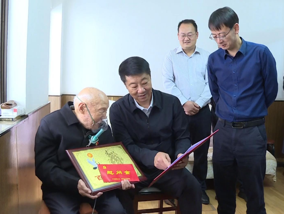 随后,冯毅又来到百岁老人李文才家中,看到老人耳聪目明,还坚持每天读书学习,冯毅向老人表达了崇高敬意。希望老人能够继续保持良好的精神状态,保重身体、健康长寿;同时,叮嘱其家人要好好地孝敬老人、照顾老人,让老人生活舒心、乐享天伦。冯毅还向李文才老人送上“百岁寿星”牌匾和荣誉证书,祝福老人福如东海,寿比南山。