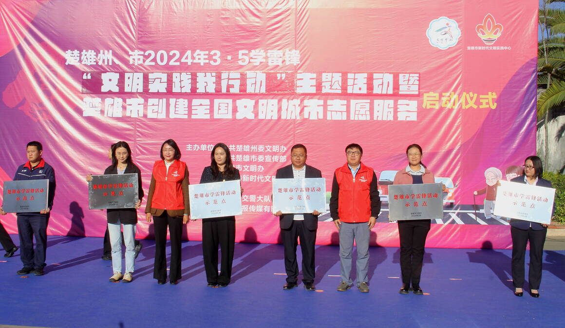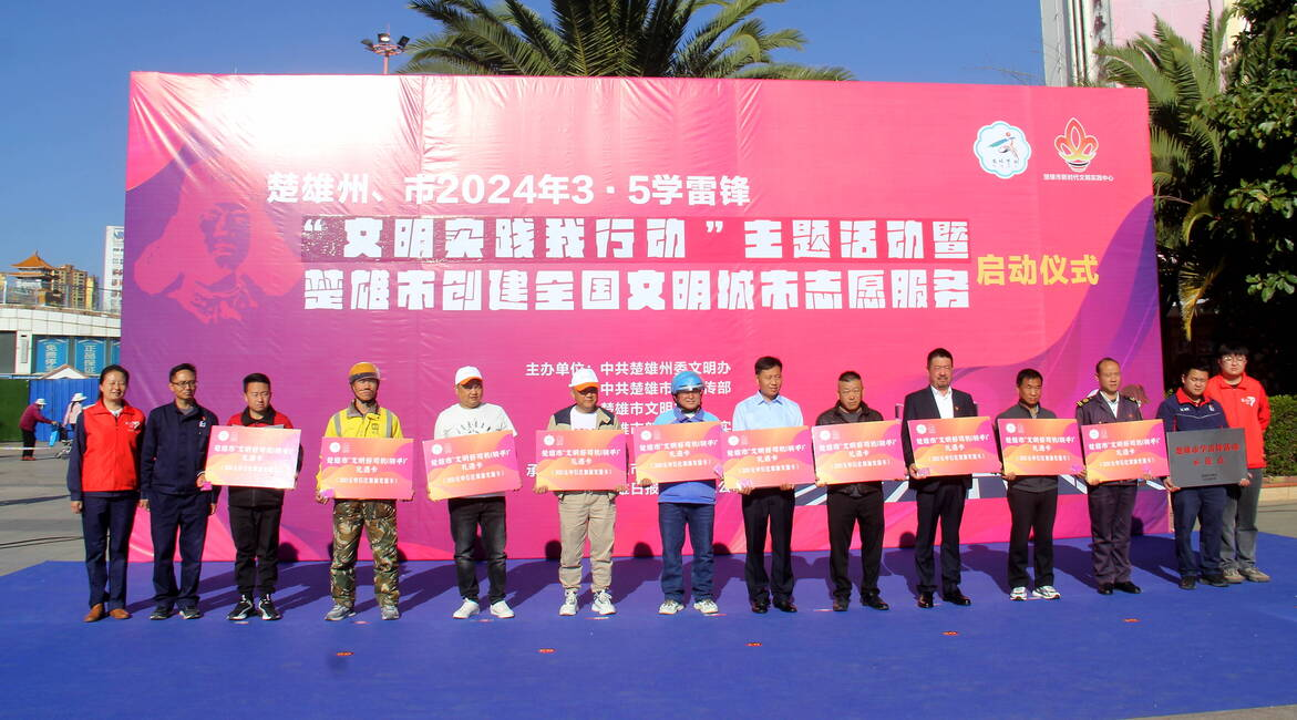 启动仪式上,参会领导为楚雄市政务服务管理局、鹿城小学等六家楚雄市首批学雷锋活动示范点进行授牌,为楚雄市“文明好司机(骑手)”发放礼遇卡。志愿者代表宣读文明交通倡议书。