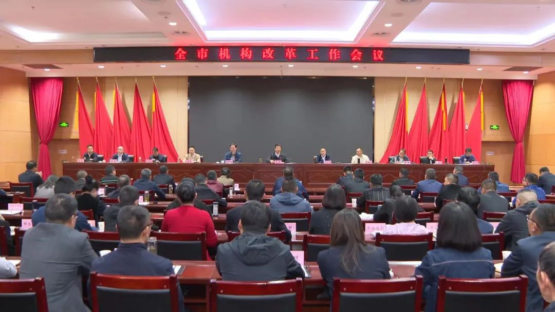 会议强调:要把机构改革组织实施工作作为重要政治任务,准确理解和把握机构改革的重点任务,抓紧组建党委社会工作部,加强金融管理职责,调整优化科技、数据管理、农业农村、老龄工作等领域机构设置和管理体制,精简规范和优化调整议事协调机构,深化行政执法体制改革,调整完善乡镇机构设置和管理体制。要紧盯关键环节,精心组织实施,按照“先立后破、不立不破”的原则,着力抓好班子配备、机构挂牌、工作衔接、“三定”制定和配套保障,确保工作不脱节不断档,高质量推进全市机构改革组织实施。