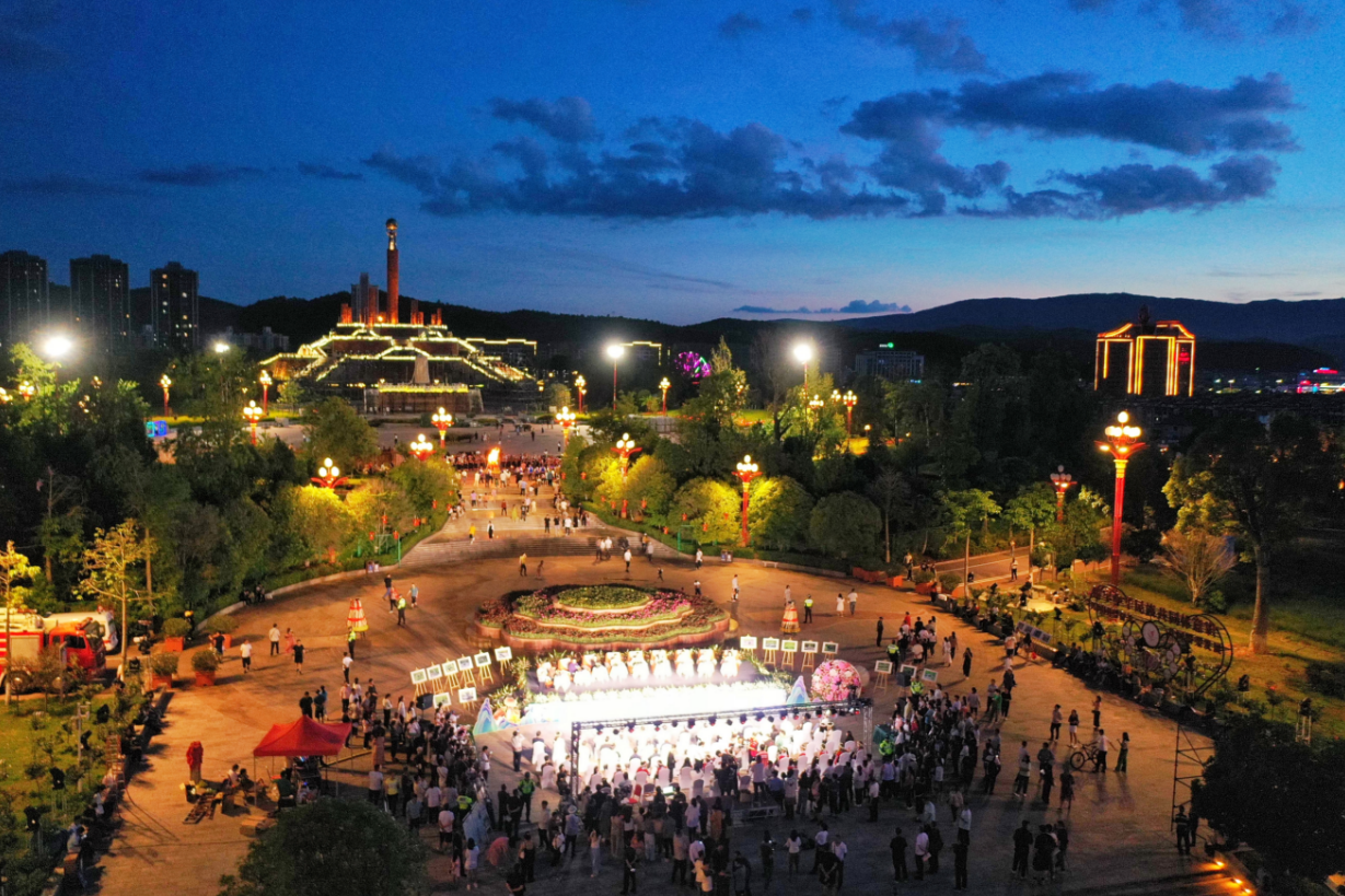 发布会现场精心布置了中彝医药、彝绣文创、鲜花、野生菌美食、恐龙人偶、绿孔雀照片展示体验区。发布会结束后,会场点燃熊熊火把,游客们跳起欢快的左脚舞,现场变成歌舞的海洋。