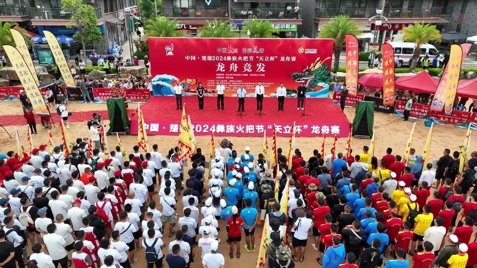 7月29日上午,中国·楚雄2024年彝族火把节“天立杯”龙舟赛在彝海公园开赛,33支参赛队伍击鼓进发,为市民们送上了一场激情四射的龙舟赛。
