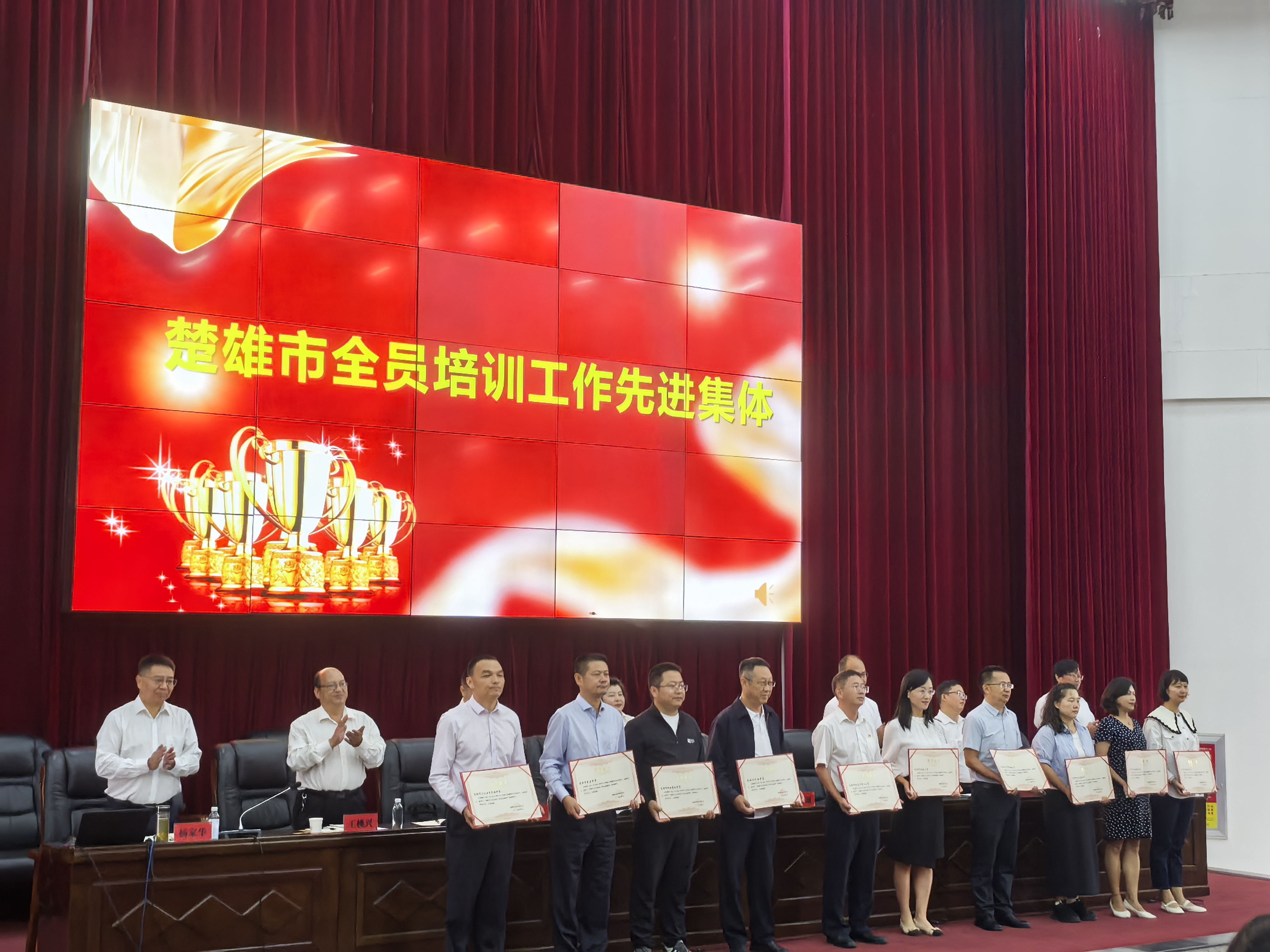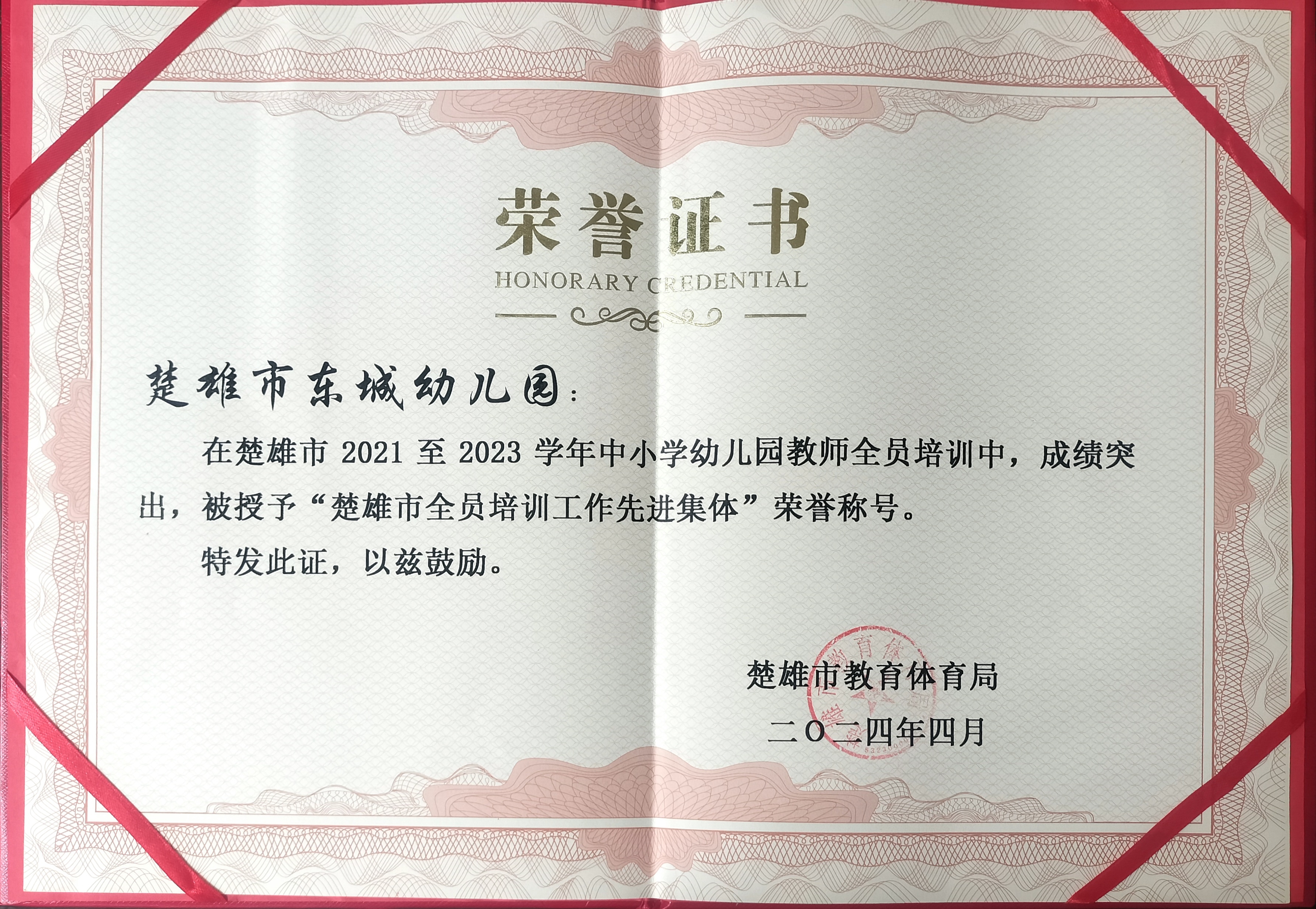 2024年8月21日上午,楚雄市教育体育局在楚雄一中报告厅召开了楚雄市教研师训工作会议。会上,楚雄市东城幼儿园被表彰为“楚雄市全员培训先进集体”,并授牌为“楚雄市中小学幼儿园教师研训实践基地”。