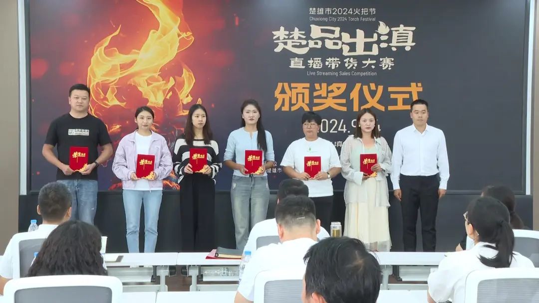 9月24日,楚雄市2024火把节“楚品出滇”直播带货大赛颁奖仪式在楚雄市数字经济产业园举行。来自全市的优秀电商直播团队和选手们,以短视频创意为媒,以直播带货为翼,以推动楚雄经济发展为目的,充分展示了电商直播的无限魅力与广阔前景。