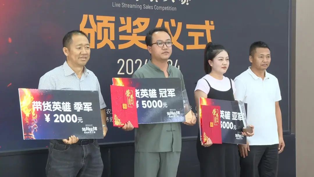颁奖仪式上,副市长张学权等与会领导分别为最具成长潜力奖、最佳产品短视频、指定产品带货PK奖、带货英雄、电商村播强镇荣誉奖、最佳组织奖等奖项获得者进行了颁奖。
