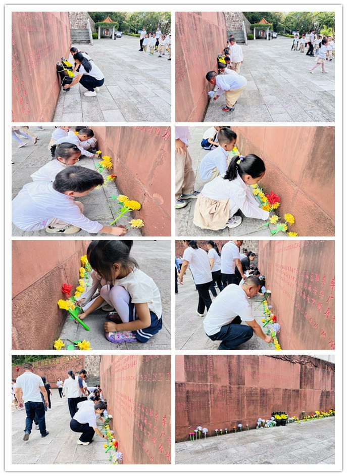 全体师幼及家长为烈士默哀1分钟,缅怀先烈们的丰功伟绩,寄托哀思。之后,全体人员向英雄烈士敬献鲜花。鲜花献英烈,哀思祭忠魂!在党员教师的带领下,小朋友们带着亲手自制的花束,向革命先辈们表达着自己最纯真的祝福与敬仰!