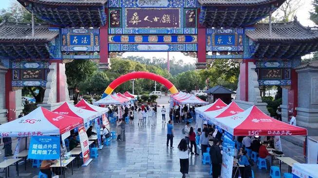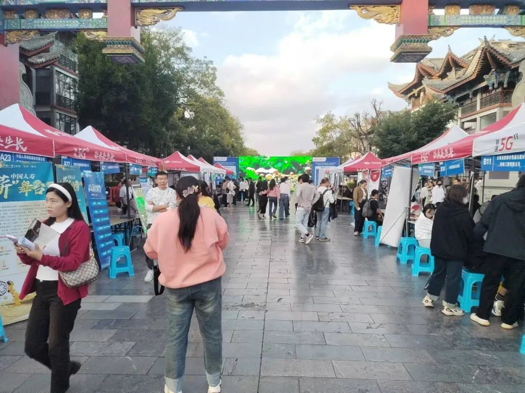 10月18日傍晚,楚雄市高新区人社部门创新服务方式,把就业服务招聘会开到景区门口,在彝人古镇为广大求职者和用人单位架起一座高效对接的桥梁。