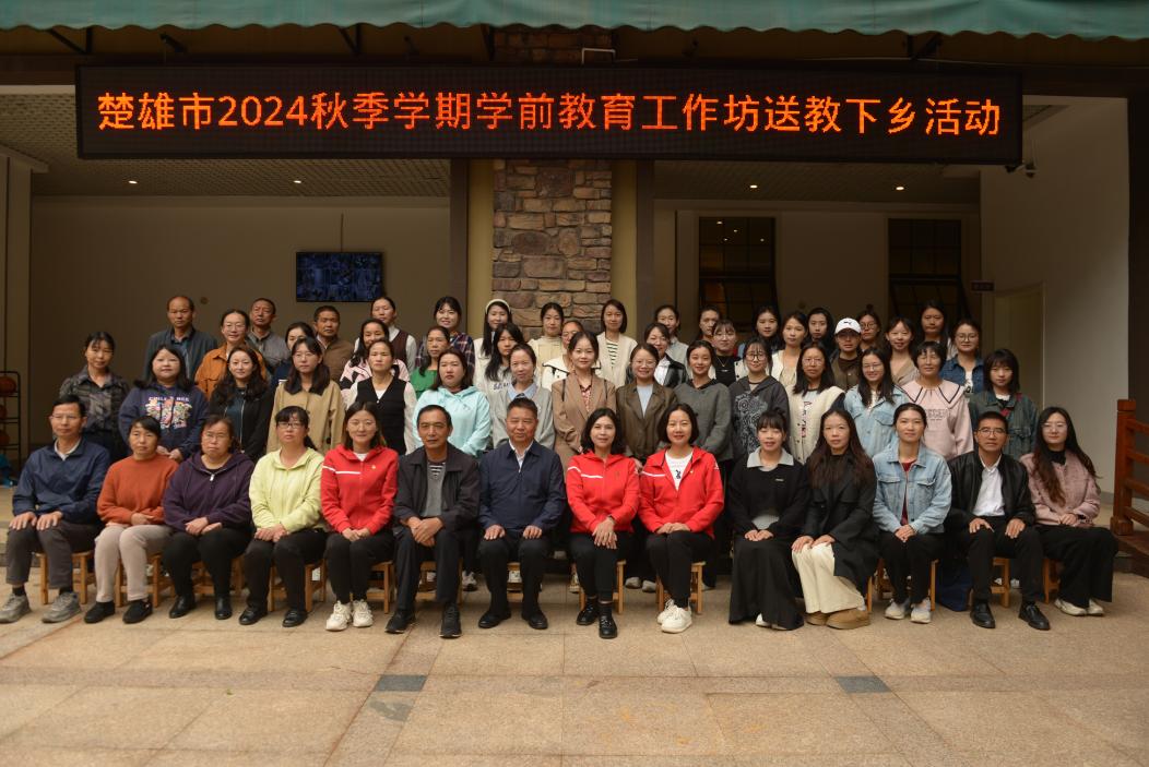 此次送教下乡活动得到楚雄市教师培训中心精心指导和大力支持,活动由学前教育工作坊坊主、东城幼儿园党支部书记、园长阮文雯主持。楚雄市委教育工委委员、市教育体育局党组成员、市教师培训中心主任杨家华参与开班仪式。楚雄市山坝区14个乡镇中心幼儿园的59名学前教育教师参加了活动。