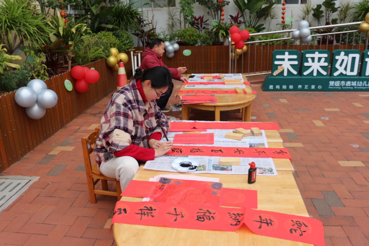 挂灯笼、粘福字、制作新年礼物,盛世幼儿园两位书法教师现场书写春联、福字,分批赠予各班贴对联、一抹抹温馨暖意的“中国红”,弥漫着新年的喜气洋洋!