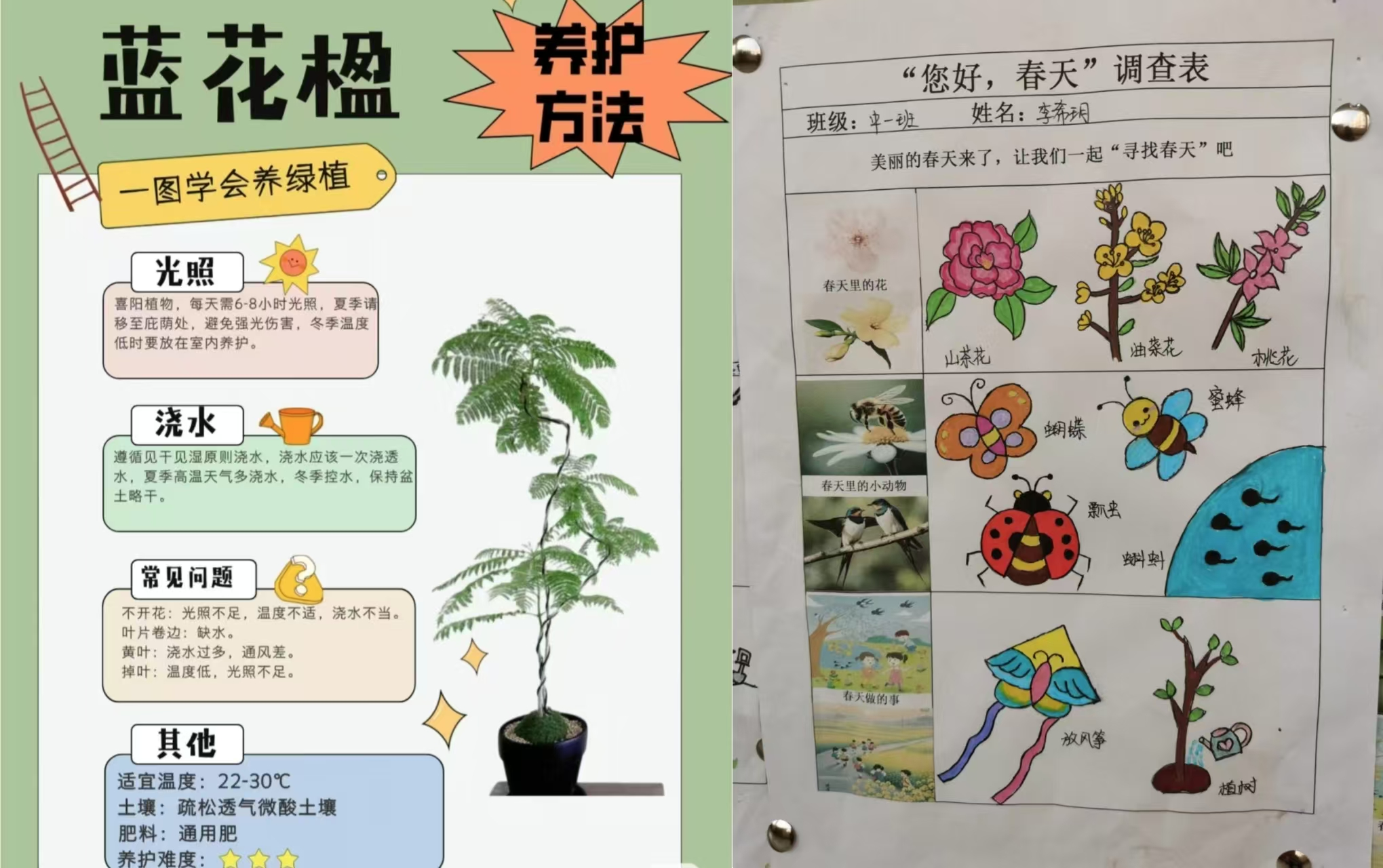 中班孩子们则化身“小小园艺师”,提前了解蓝花楹喜欢的土壤、光照和温度,知道了蓝花楹需要充足的光照,喜欢肥沃、湿润、排水良好的沙壤土。孩子们一起选择了适宜的栽种地点,在老师的精心指导下,学习如何正确种植树苗。孩子们齐心协力,挖坑、扶苗、填土、浇水,忙得不亦乐乎,小树苗在孩子们的精心呵护下,昂首挺立,为幼儿园增添了一抹新绿。