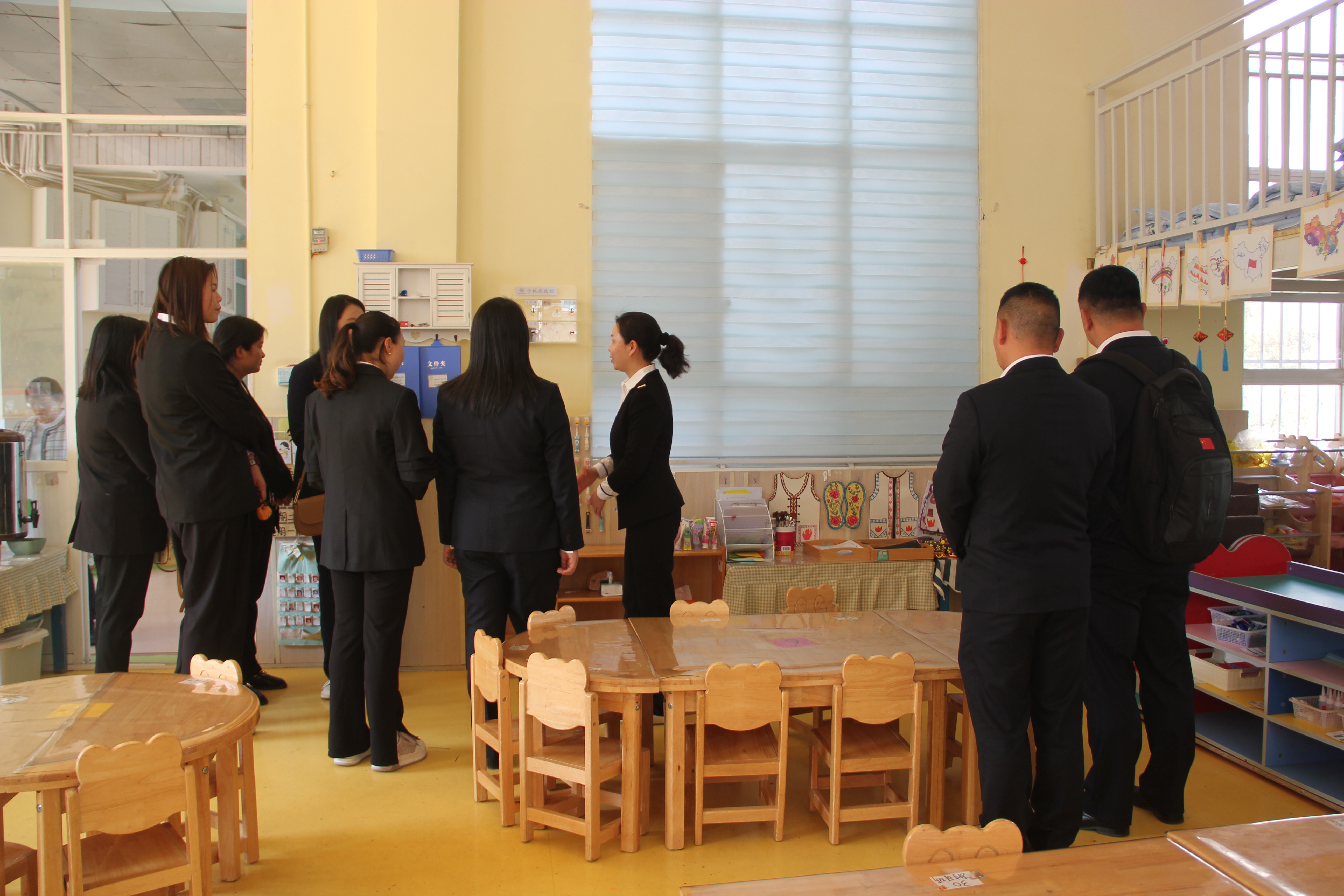 学院领导及教师们在园方的引导下,先后步入幼儿园各个功能馆室、幼儿活动室、户外活动场地等进行参观,详细了解幼儿园各项工作并进行指导。