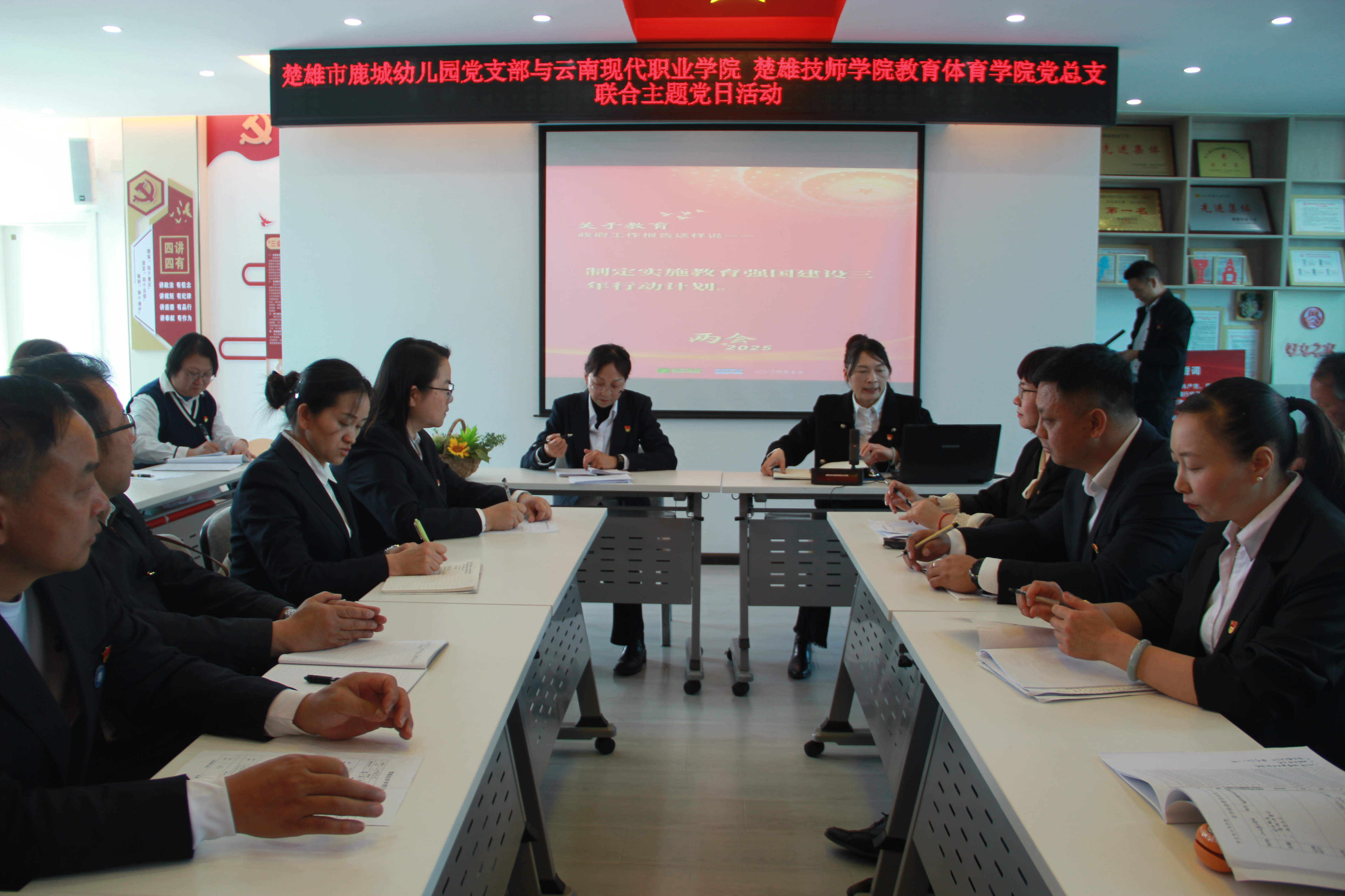 3月12日,楚雄市鹿城幼儿园党支部与楚雄技师学院 云南现代职业技术学院教育体育学院党总支携手在鹿城幼儿园开展了以“党建引领聚合力,协同育人促发展”为主题的联合主题党日活动。
