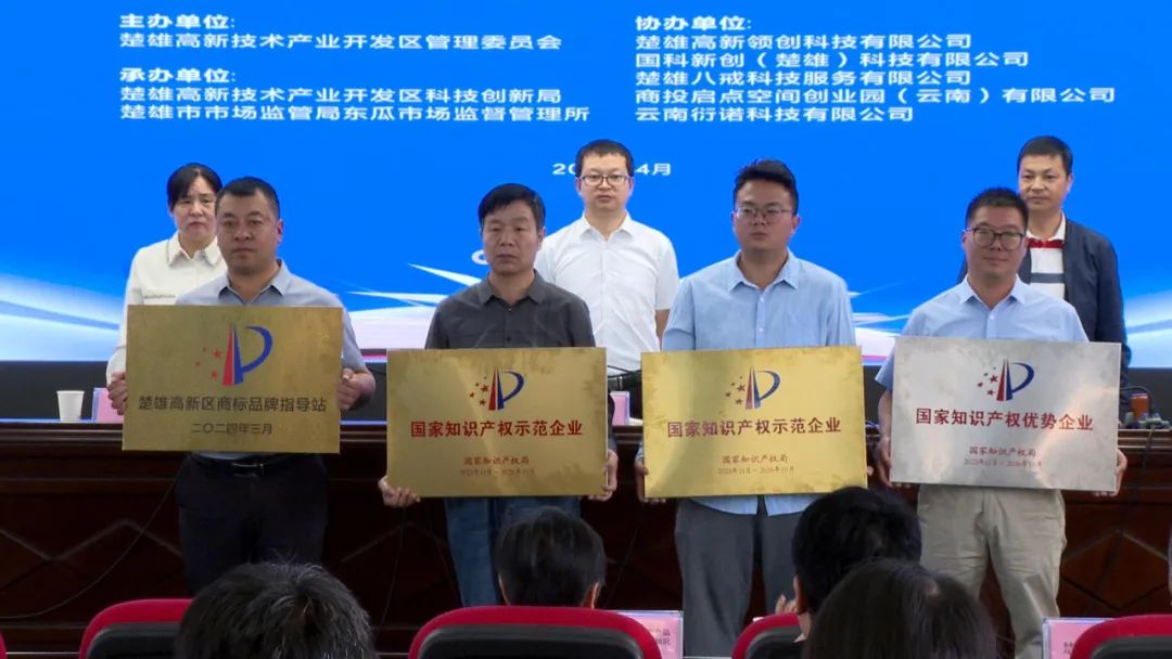 会上,与会领导为国家知识产权示范、优势企业和云南省知识产权推动高质量发展示范企业、云南省知识产权信息服务网点、高新区商标品牌指导站授牌,为云南省知识产权实务人才颁证。州公安局环境资源和食品药品犯罪侦查支队(知识产权犯罪侦查支队)、市公安局环境资源和食品药品犯罪侦查大队(知识产权犯罪侦查大队)分别与云南金七制药有限公司、云南马大泡食品有限公司签订知识产权保护“警企”联动合作协议。楚雄川至电子材料有限公司、楚雄云植药业有限公司、云南世纪华宝医药产业开发有限公司相关负责人分别进行了企业知识产权路演。