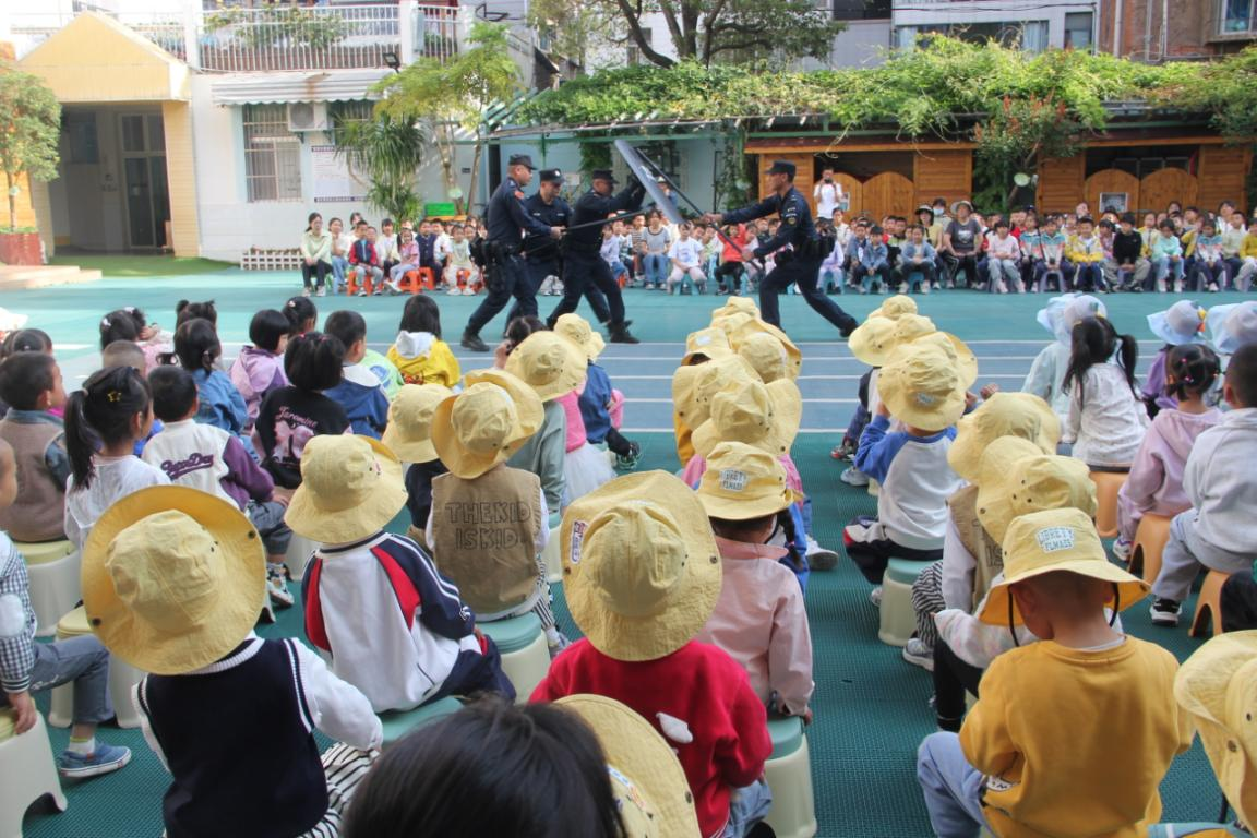 最后,民警们针对幼儿年龄特点,在幼儿园操场为小朋友带来了一场别开生面的警用器械表演。通过展示,孩子们不仅认识了警用器械,更在心中种下了安全与正义的小种子。