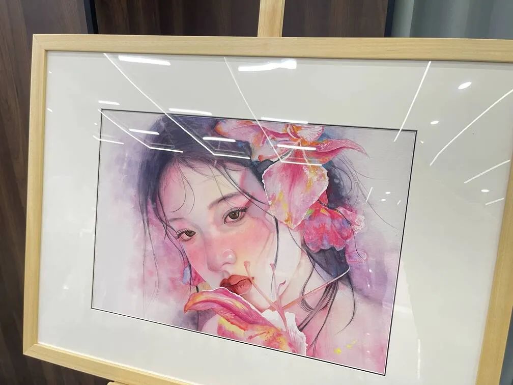 美术展区油画、水彩、国画等多画种同台呈现,青年画家李红燕的水彩画《百合少女》以细腻笔触描绘彝族少女和百合花的浪漫情怀,成为打卡热点。李红燕介绍,这幅画是以彝族少女和百合的结合,同时主题是以浪漫花火,突出了楚雄浪漫花都的形象,并且与火把节结合,也希望大家来到楚雄本地能够看到彝族少女情怀和热情。