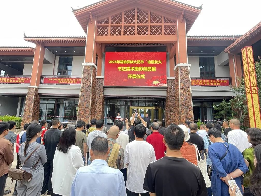 7月16日上午,2025年楚雄彝族火把节“浪漫花火”书法美术摄影精品展在彝人古镇展馆开展。本次展览汇聚了百余位艺术家的100件精品力作,以多元艺术形式诠释“浪漫”与“花火”的碰撞,为市民带来一场视觉与心灵的双重盛宴。
