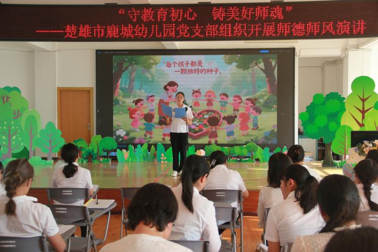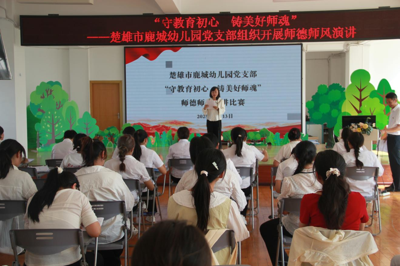 为深入贯彻落实中央八项规定精神,聚焦“深入学习思考、认真查摆问题、扎实整改整治”要求,聚精会神抓好学习教育各项任务落实,持续推进作风建设,楚雄市鹿城幼儿园党支部于近日精心策划开展了主题为“守教育初心,铸美好师魂”的教职工师德师风演讲比赛。