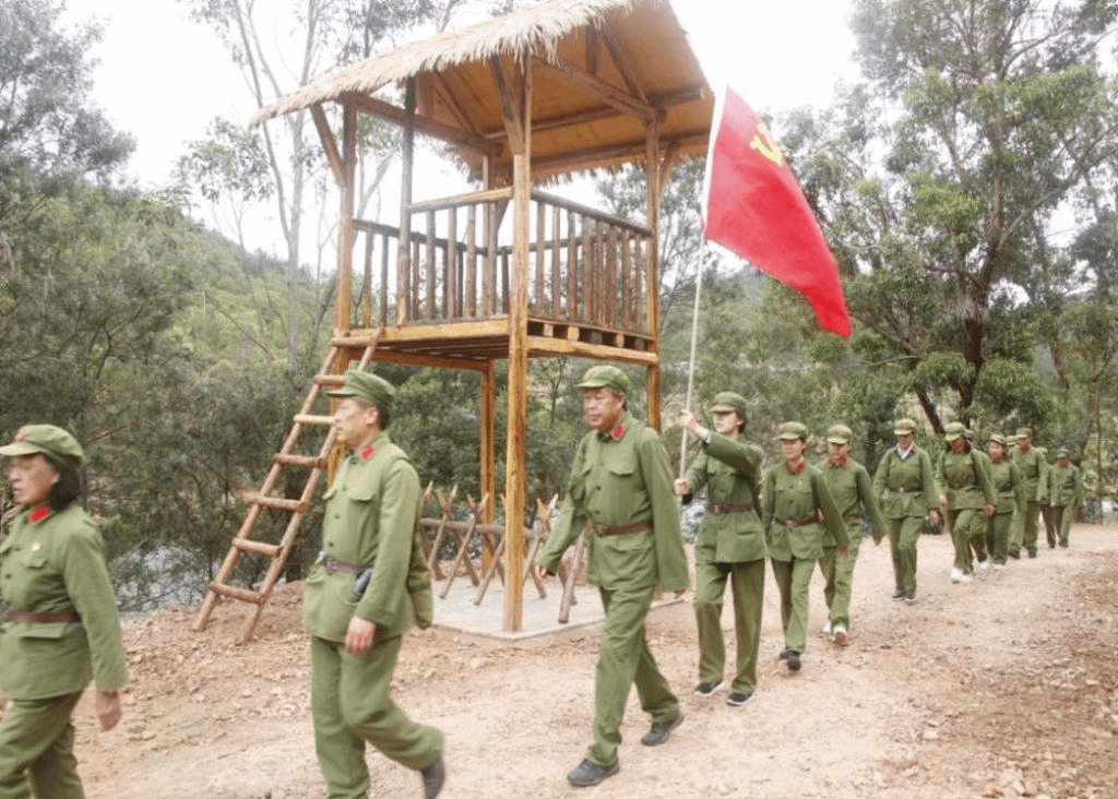 在红色教育基地,全体同志穿上军装,肩负“军粮”,在党旗的引领下,踏着1950年“征粮干部”的脚印,重走当年征粮工作队员走过的征粮路,从老县委出发,途经收粮点、运粮点、城防大队遗址、老城墙遗址等。一路聆听讲解员讲述1950年5月在征粮和云龙保卫战中牺牲烈士的光辉事迹,体验征粮工作队的艰苦卓绝,学习革命先辈为党和人民不怕牺牲、顽强拼搏的精神。走完征粮路,在基地教官的带领下来到云龙烈士陵园、云龙烈士纪念馆,深切缅怀1950年双柏县征粮剿匪战斗中英勇牺牲的28位革命先烈。在烈士纪念碑前,大家列队肃立默哀,敬献鲜花、鞠躬致敬,表达了对革命先烈的深切怀念与哀思;并重温了入党誓词,表达对党的忠心和为人民服务的坚定信念。