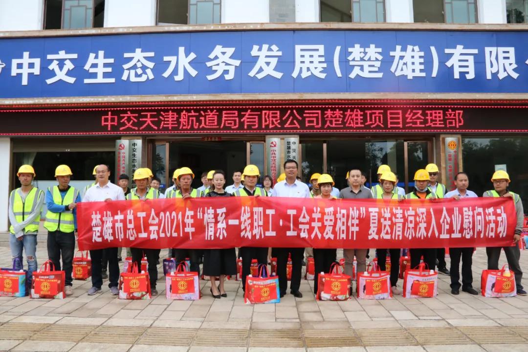 5月25日上午,市总工会开展2021年“情系一线职工・工会关爱相伴”夏送清凉慰问活动,为奋战在高温一线职工送去党委、政府和工会组织的关怀温暖。市人大常委会副主任,市总工会党组书记、主席马文辉带领市总工会班子成员来到宇泽半导体(云南)有限公司、中交生态水务发展(楚雄)有限公司、楚雄太阳女交通旅游集团、云南建景建设工程有限公司等企业慰问一线户外工作者,为他们送上防暑降温慰问品。