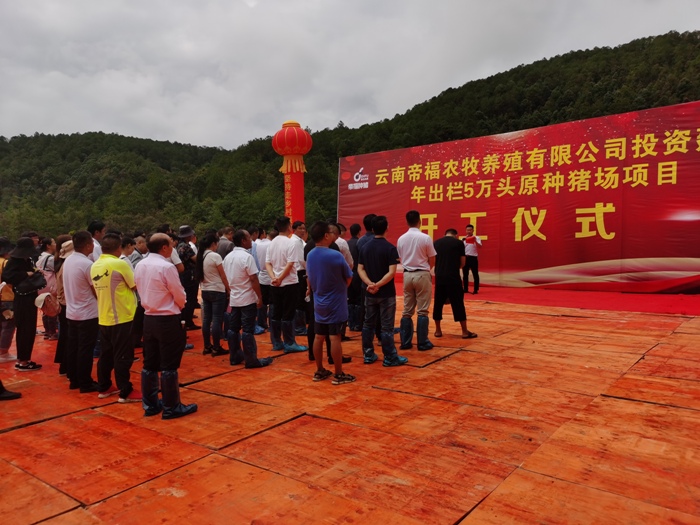 6月29日,云南帝福农牧养殖有限公司在楚雄市东华镇宜茨村举行开工奠基仪式。