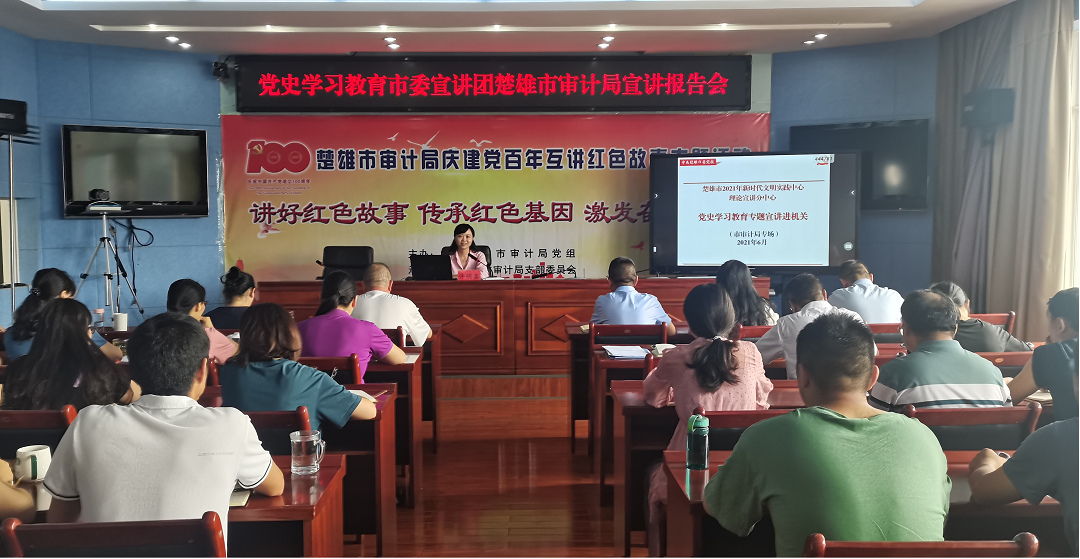 为庆祝中国共产党成立100周年,推动党史学习教育各项工作扎实开展,营造“学党史、悟思想、办实事、开新局”的浓厚氛围,通过党史学习教育,进一步加强审计干部的理论武装,改进工作作风,提升审计干部队伍的能力素养,6月15日,楚雄市审计局开展党史学习教育宣讲报告会,邀请党史学习教育市委宣讲团成员、市委党校副校长许明鑫同志进行专题宣讲,市审计局全体干部职工参加会议。