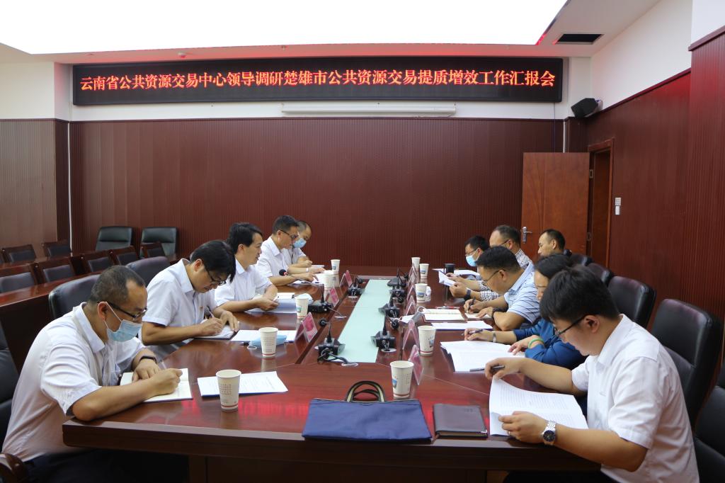 9月9日下午,云南省公共资源交易中心主任郑成安带领省公共资源交易中心交易服务部、咨询服务部调研组领导一行深入楚雄市实地调研公共资源交易提质增效工作。