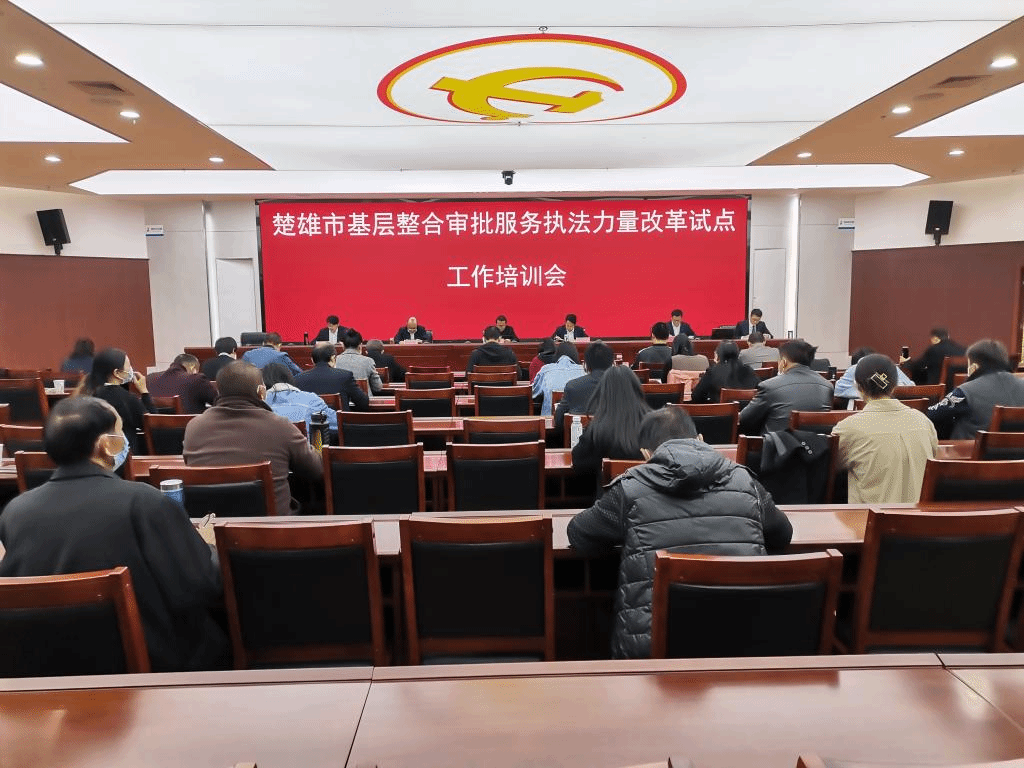 11月12日,楚雄市基层整合审批服务执法力量改革试点工作培训会在楚雄市政务服务中心举办,市政务服务局班子成员、科室负责人及审批业务人员,东华镇、大过口乡行政审批和综合执法局全体干部职工共60人参加此次培训。