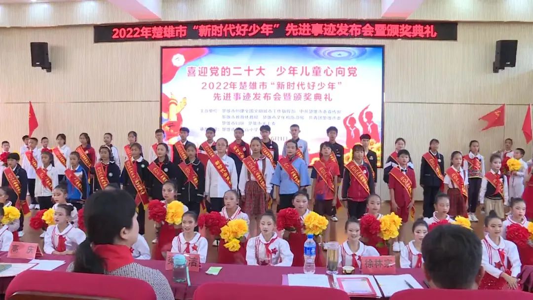 6月1日下午,由楚雄市创建全国文明城市工作指挥部、市委宣传部、市文明办、市教育体育局等部门联合主办的2022年楚雄市“新时代好少年”先进事迹发布会暨颁奖典礼在楚雄市茶花谷小学举行。