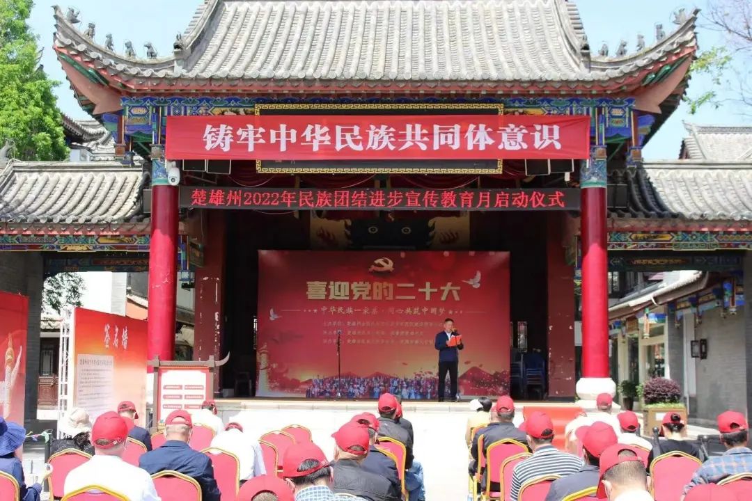 2022年4月13日下午,由楚雄州全国民族团结进步示范区建设领导小组主办,楚雄州民族宗教事务委员会、共青团楚雄州委承办,楚雄市民族宗教事务局、楚雄市东瓜镇彝人古镇社区协办的楚雄州2022年民族团结进步宣传教育月活动在彝人古镇启动。