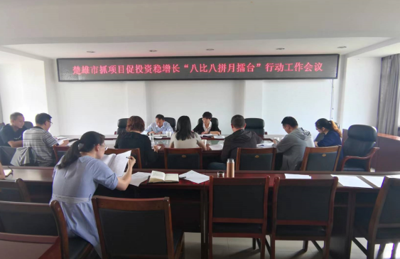 会议共3项议程,市发展和改革局对《楚雄市抓项目促投资稳增长“八比八拼月擂台”行动方案(试行)》进行解读,参会单位交流发言,市发展和改革局局长黄忠宝作会议总结和工作要求。